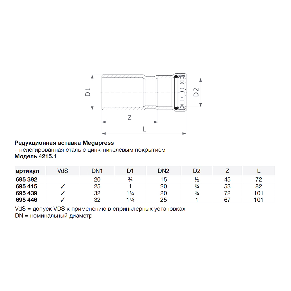 Муфта-вставка Viega Megapress SC-Contur (695446) 1 1/4х 1пресс нелегированная оцинкованная сталь