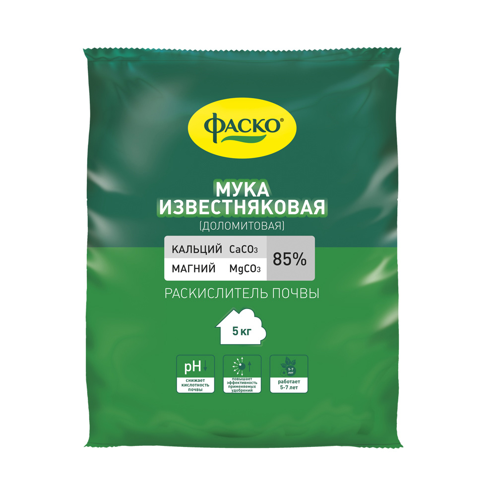 Комплексный мелиорант длительного действия, специально разработанный для раскисления почв. Известняковая (доломитовая) мука вносится как в открытый грунт, так и в закрытый – парник, теплица. Эффективность проявляется на бедных магнием песчаных и супесчаных почвах. Обогащает почву кальцием и магнием.