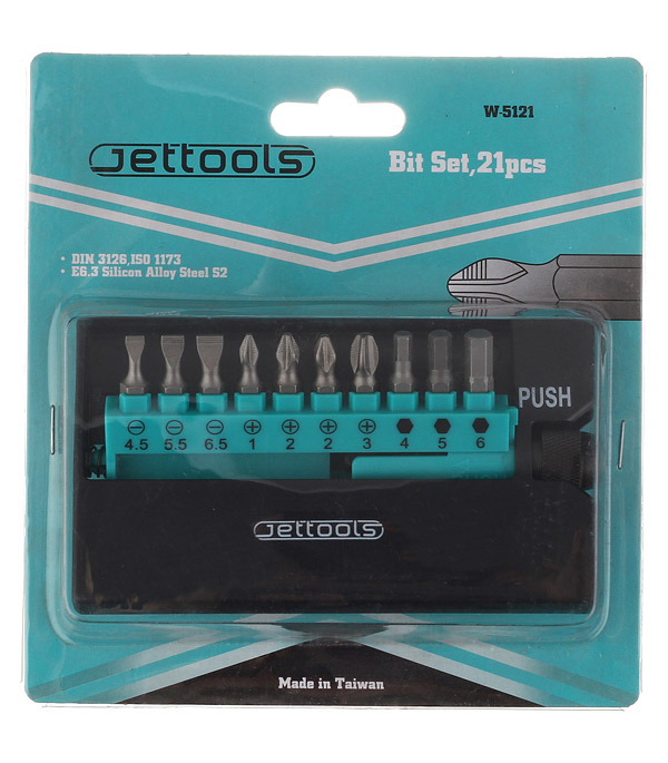 Набор бит Jettools (W-5121) PH/ PZ/ SL / TORX/ HEX 25 мм с адаптером (20 шт.)
