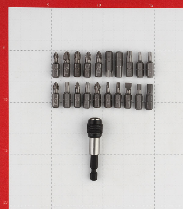 шлицы PH1, PH2 – 2 шт., PH3, РZ1, РZ2 – 2 шт., РZ3, SL4.0, SL5.5, SL6.5, T10, T15, T20, T25, T30, T40, H4, H5, H6.