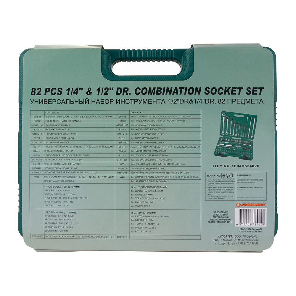 Применяется для производства комплексных слесарно-монтажных работ по монтажу, ремонту, техническому обслуживанию. Универсальный набор применяется для производства комплексных слесарно-монтажных работ по монтажу, ремонту, техническому обслуживанию. rnНабор состоит из 82 предметов.rn – Адаптер для удлинителя под вороток 3/8’’(F)x1/2’’(M);rn – Держатель для бит 1/2’’DR x 5/16’’;rn – Т-образная рукоятка;rn – Шарнир карданный;rn – Гибкий привод;rn – Отверточная рукоятка;rn – Переходник для бит;rn – Пластиковый кейс.