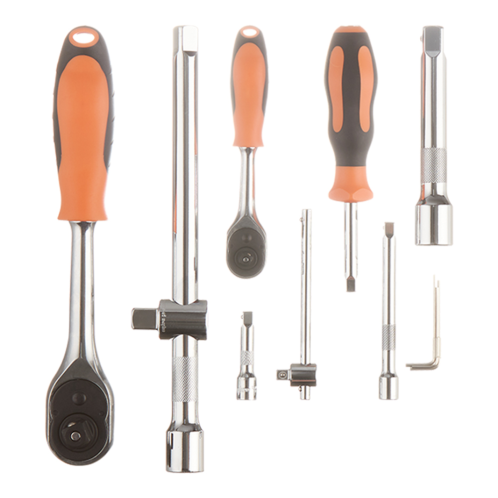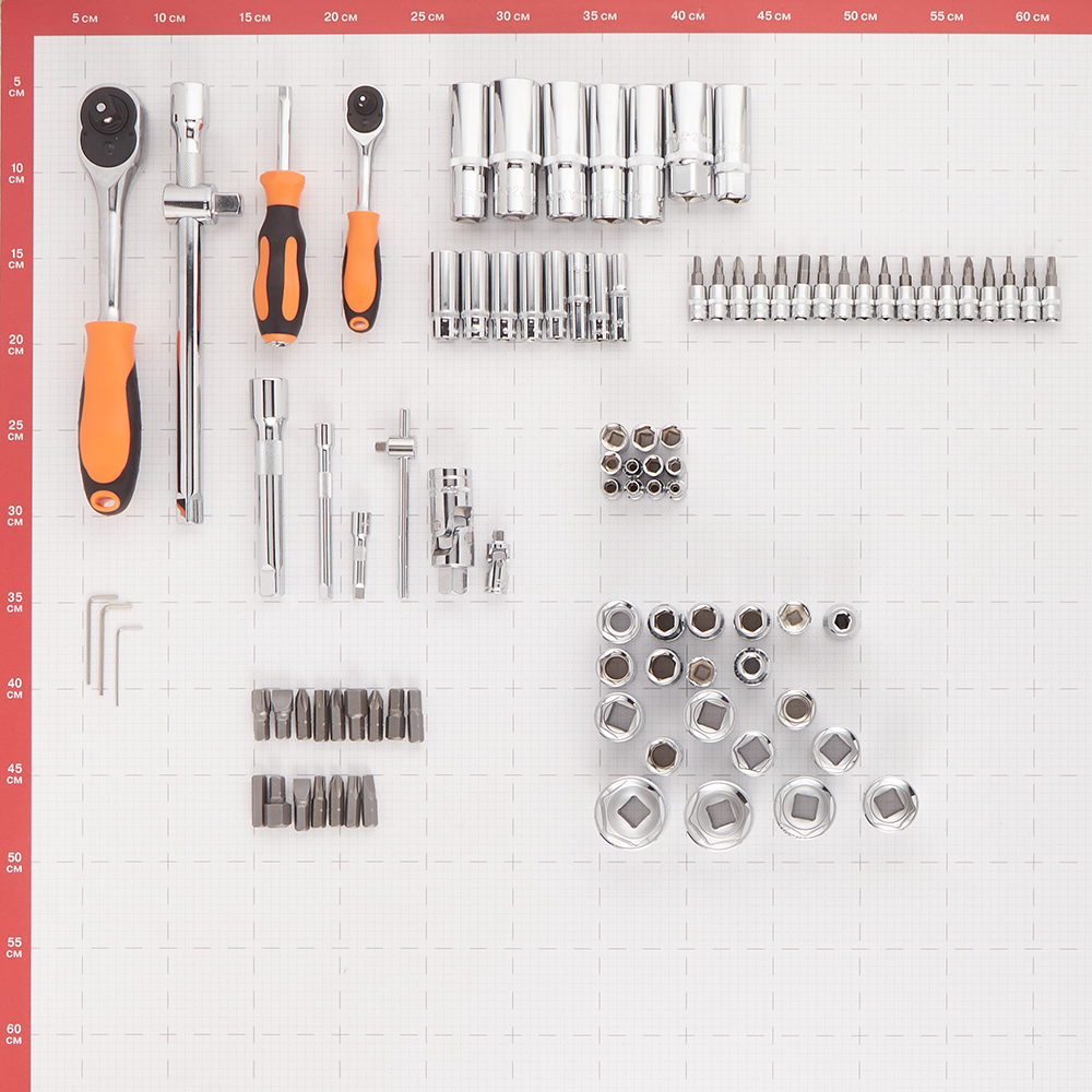 Применяется для производства комплексных слесарно-монтажных работ по монтажу, ремонту, техническому обслуживанию.Позволяет производить обслуживание резьбовых соединений с внешними и внутренними рабочими профилями в широком диапазоне. Универсальный набор инструмента популярной комплектации, позволяющей производить обслуживание резьбовых соединений с внешними и внутренними рабочими профилями в широком диапазоне. Данный набор можно считать отличным дополнением для организации рабочего места механика.rnНабор состоит из 94 предметов.rn – Шарнир карданный 1/4DR;rn – Рукоятка отверточная 1/4DR;rn – Рукоятка трещоточная 1/2DR 72 зубца;rn – Шарнир карданный 1/2DR;rn – Переходник 3-х сторонний 1/2DR;rn – Переходник для вставок-бит 1/2DR*5/16HDR;rn – Кейс пласиковый.