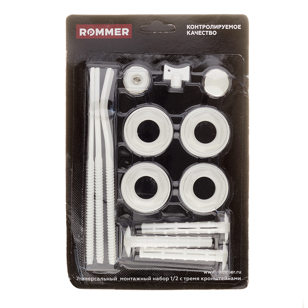 Набор присоединительный Rommer 1х 1/2для радиатора с тремя кронштейнами белый