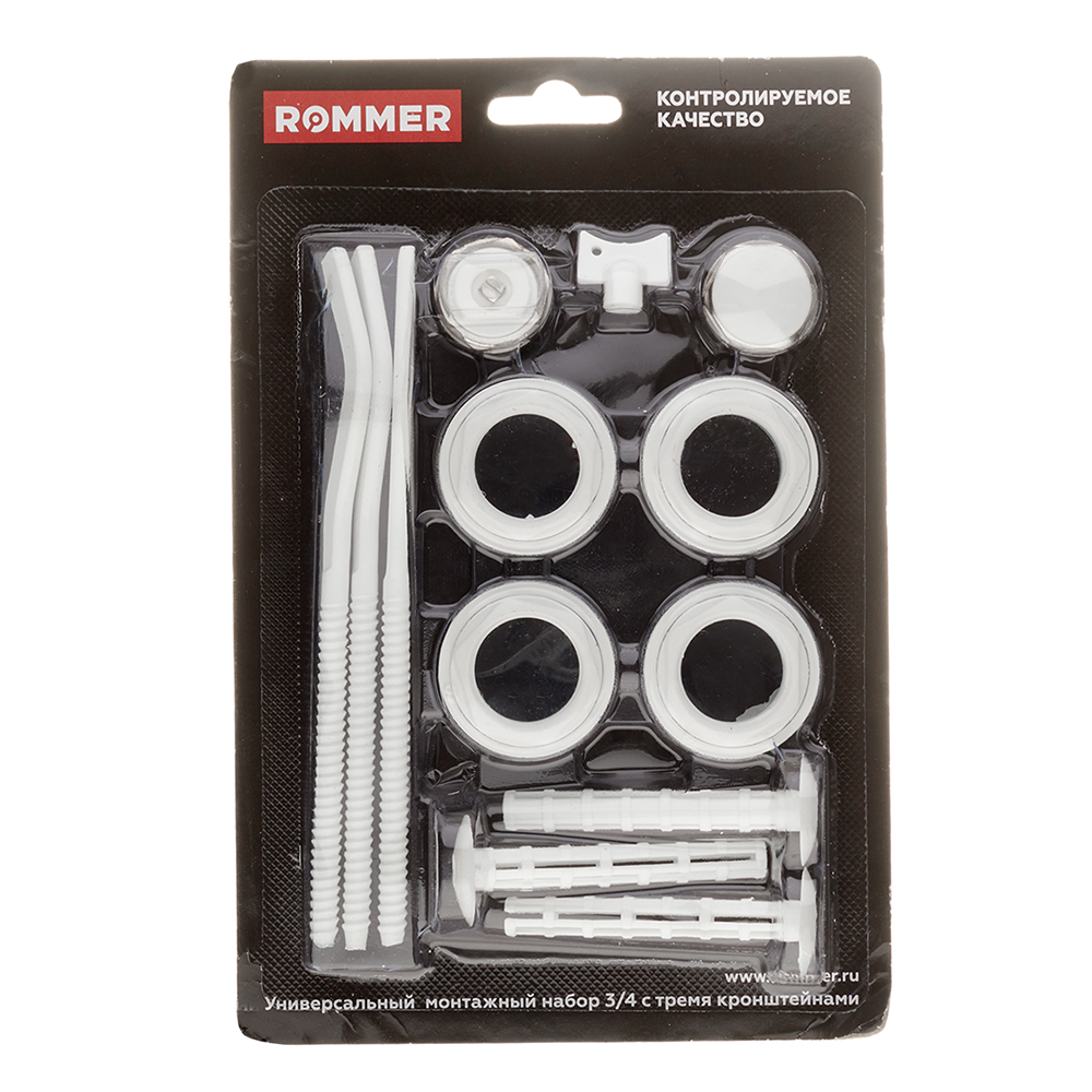 Набор присоединительный Rommer 1х 3/4для радиатора с тремя кронштейнами белый