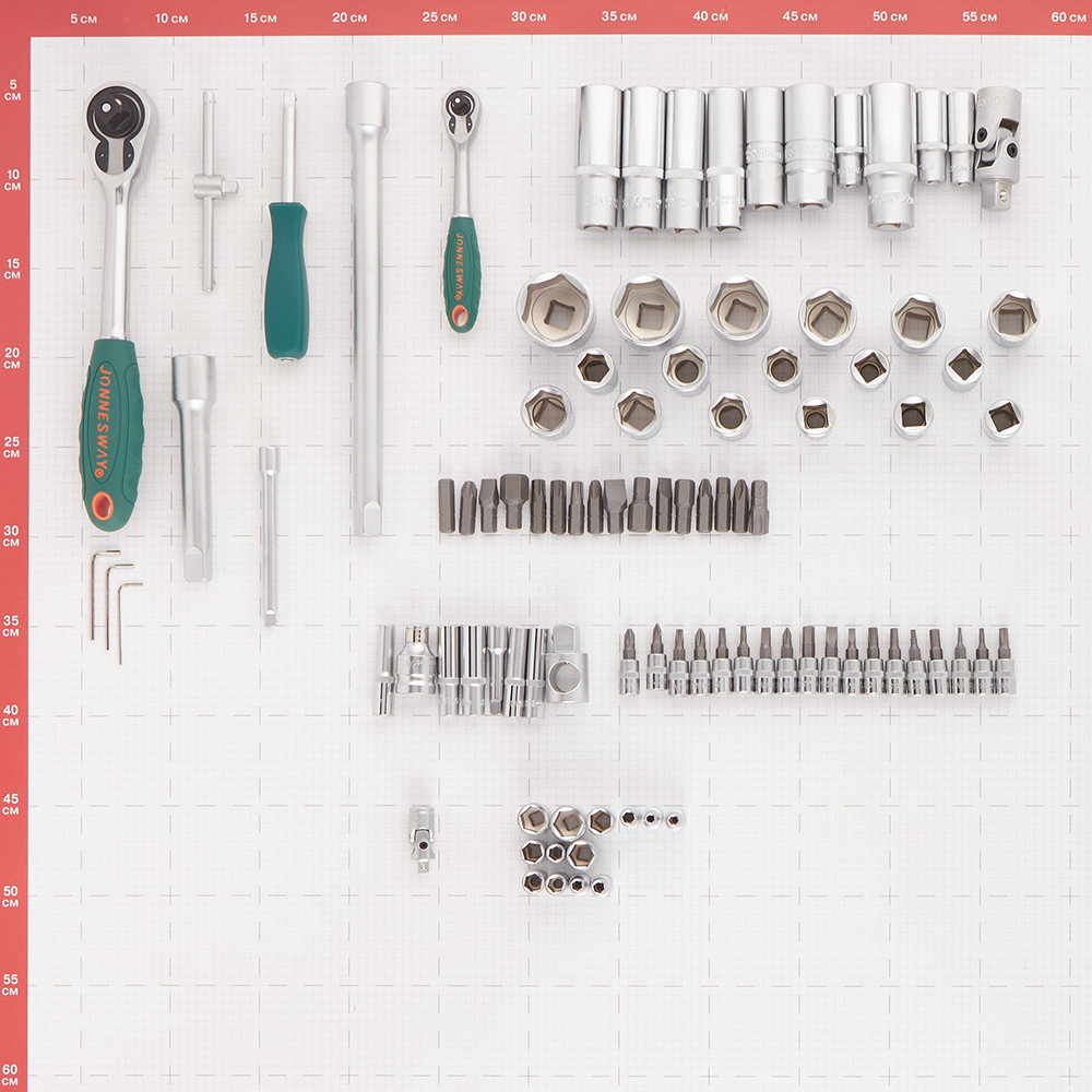 Предназначен для работ с резьбовыми соединениями. Обеспечивают наилучшие условия для приложения рабочего усилия по сравнению с другими видами инструмента для работы с внешними рабочими профилями. Торцевые головки выполнены из хромованадиевой стали, имеют накатку и полуматовое хромоникелевое покрытие. Основная разновидность рабочих насадок сборного слесарно-монтажного инструмента – это торцевая головка. Торцевые головки разделяются по геометрии рабочего профиля, по длине и по назначению. Такие инструменты обеспечивают наилучшие условия для приложения рабочего усилия по сравнению с другими видами инструмента для работы с внешними рабочими профилями. Шестигранный рабочий профиль считается наилучшим с точки зрения приложения максимальных рабочих нагрузок, передаваемых крепежной детали. Система инструмента с присоединительным квадратом 1/2’’DR является сегодня самой универсальной, покрывая самый большой диапазон размеров от 8 до 36 мм. За её рамками находятся лишь несколько самых мелких размеров и размеры крепежа, применяемые в крупногабаритных конструкциях. Данная система самая «богатая» по количеству разнообразных насадок, вариантов переходников и приводов и поэтому инструмент с присоединительным квадратом 1/2’’DR является основой, на которой строится вся система сборного слесарно-монтажного инструмента предприятия. Торцевые головки 1/2’’DR позволяют прилагать рабочие нагрузки, которые только в состоянии выдержать резьбовые соединения. Торцевые головки набора выполнены из хромованадиевой стали, имеют накатку и полуматовое хромоникелевое покрытие. rnНабор состоит из 24 предметов.rn – Шарнир карданный;rn – Металлический кейс.