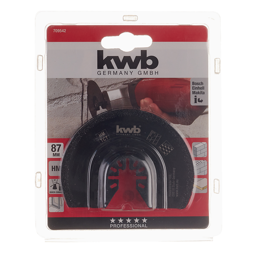 Пригодно для фрезерования пазов для прокладки труб или скрытой проводки в силикатном кирпиче, газобетоне, штукатурке. Идеально подходит для работы с плиткой: чистый рез керамической плитки, очистка затирочных швов, легкая замена поврежденной керамической плитки прямо на стене. Имеет универсальное крепление (Bosch, Einhell, Makita) при использовании адаптора позволяет использовать данное полотно на МФУ др. производителей.
