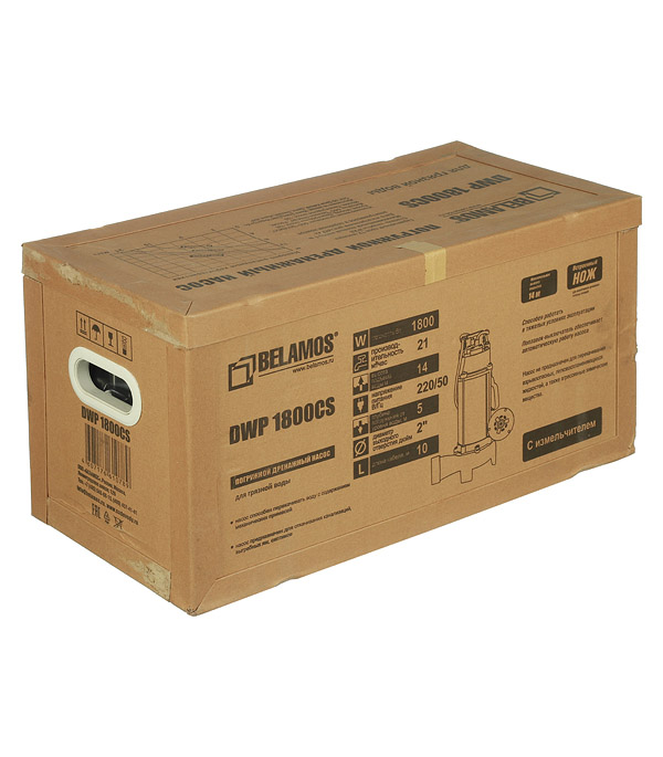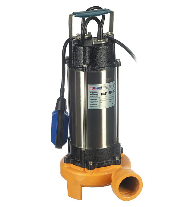 Погружной дренажный насос Belamos DWP 1800 с ножами – это устройство для отвода отходов, сильнозагрязнённой воды с крупными включениями.rnМожет использоваться для откачки выгребных ям и стационарных септиков на участках, на производствах и предприятиях питания, в домах со старой канализацией.rnКатегорически запрещается использовать электрический кабель для подвешивания насоса. Для погружения или подъема насоса необходимо использовать шнур или трос, привязанные к его рукоятке.rnВключать насос необходимо через стабилизатор напряжения. Обязательна установка УЗО более 30 мA. rnНе предназначен для использования в системах водоснабжения.
