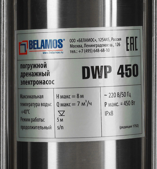 Насос дренажный Belamos (DWP450) для грязной воды 116 л/мин