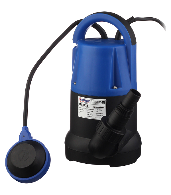 Насос, кабель питания 10 м с вилкой, поплавок, патрубок со штуцером на шланг 1-1.1/4.