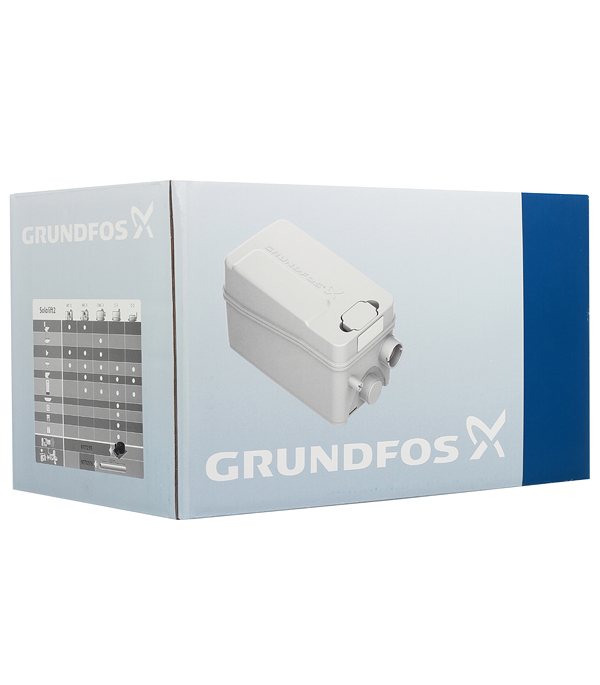 Канализационная насосная установка Grundfos SOLOLIFT2 D-2 это малогабаритная, полностью укомплектованная и готовая к монтажу насосная установка.rnПредставляет собой герметично закрытый пластиковый резервуар в котором расположены – насос с двигателем “сухого исполнения” с обратным клапаном в напорном патрубке; реле уровня; вентиляционный клапан с угольным фильтром улучшенного качества (не требуются никакие дополнительные фильтры); электрический кабель длиной 1.2 м со штекером Shuko.rnНасос автоматически включается при заполнении резервуара (уровень включения) и автоматически выключается при его опорожнении (уровня выключения).