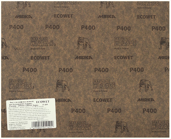 ECOWET – водостойкая, Р400 – размер абразивного зерна, чем меньше номер – тем крупнее зерно.