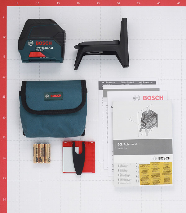 батарейка 1,5 В LR6 (AA) х 3шт, поворотное крепление RM 1 Professional, лазерный отражатель, 1/2 вкладыш для кейса L-BOXX под инструмент, чехол.