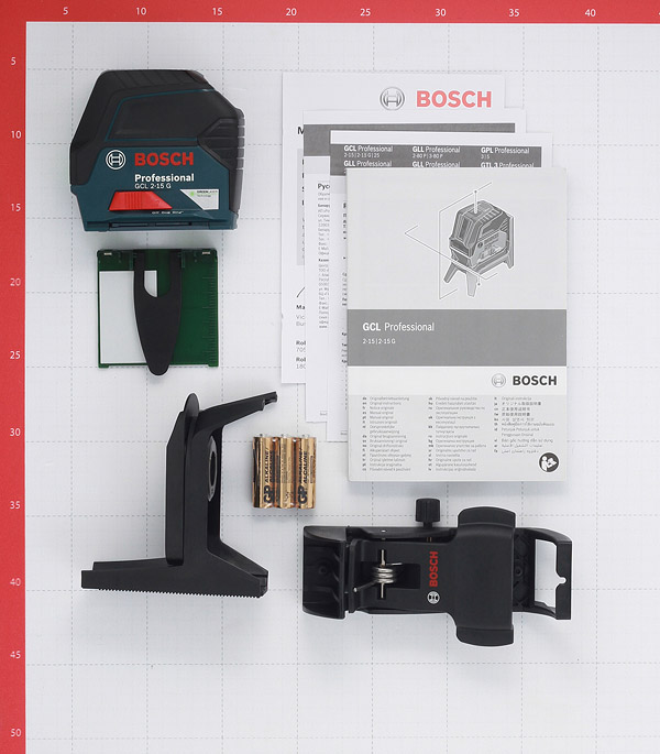 чемоданчик, батарейка 1,5 В LR6 (AA) х 3шт, лазерный отражатель, поворотное крепление RM 1 Professional, 1/2 вкладыш для кейса L-BOXX под инструмент.