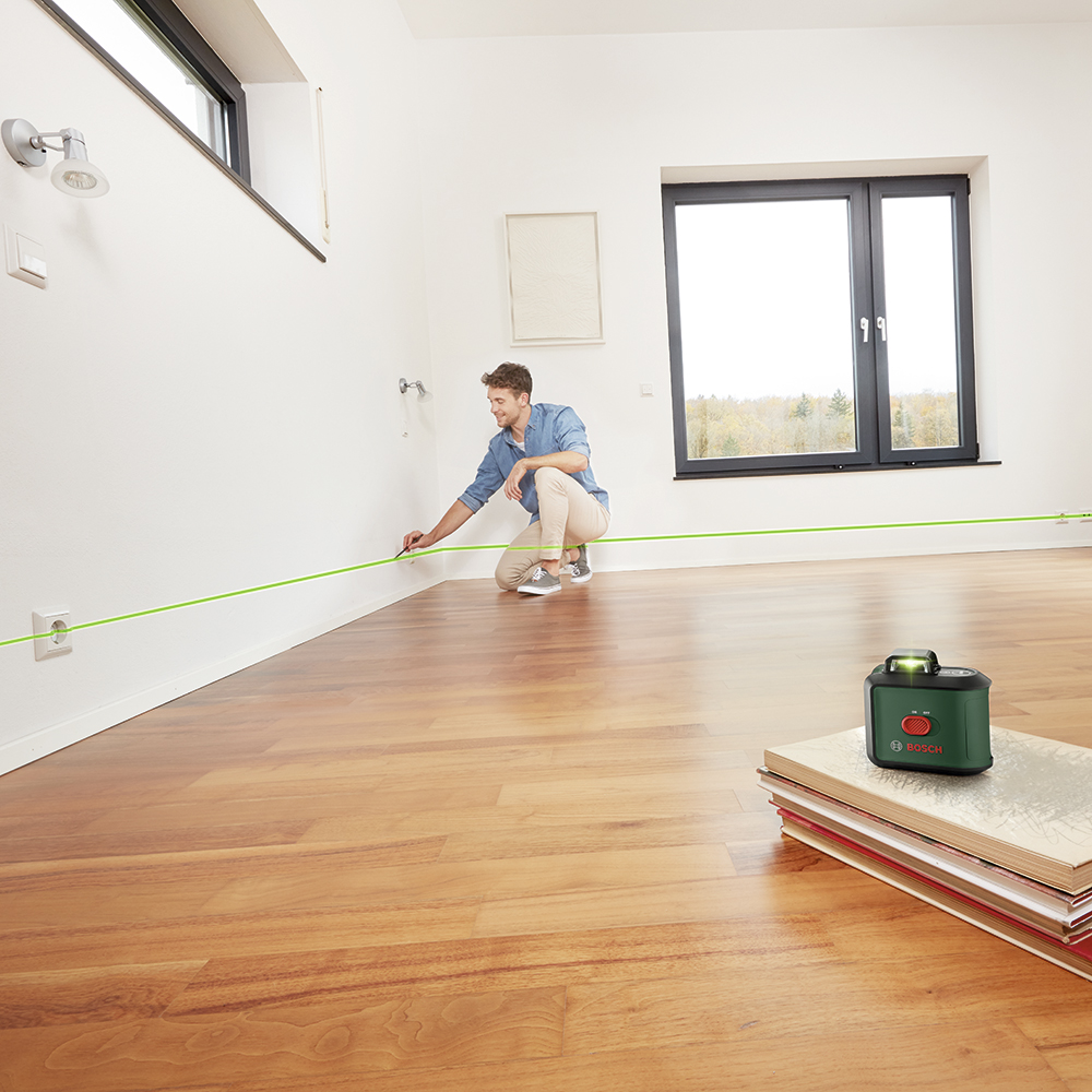 Высокоточное выравнивание с превосходной видимостью во всем помещении.rnГоризонтальный луч на 360° для точного выравнивания по всему помещению.rnИдеально выровненный вертикальный луч для еще большего спектра применения.rnТехнология зеленого лазера улучшает видимость в 4 раза даже несмотря на яркое освещение.rnТочные и хорошо видимые лазерные лучи с точностью выравнивания ± 0,4 мм/м и диапазоном самонивелирования.rnИдеально подходит для установки карнизов, монтажа розеток и подвесных потолков.