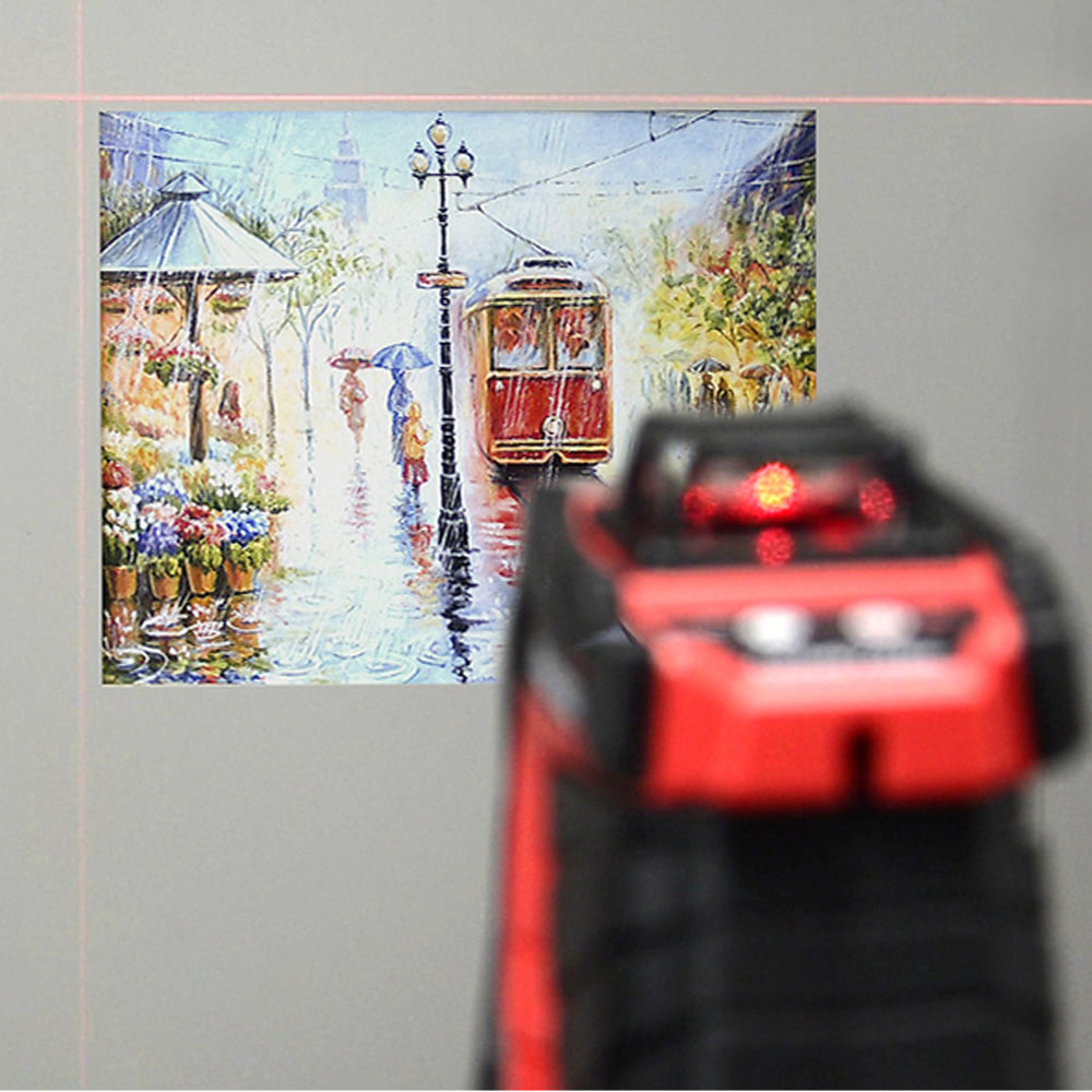 CONDTROL XLiner Combo 360 имеет функцию автоматического выравнивания, которую можно отключить. Блокировка компенсатора позволяет строить линии под любым углом. Такая функция пригодится во время укладки плитки, установки лестничных перил или разметки декора.