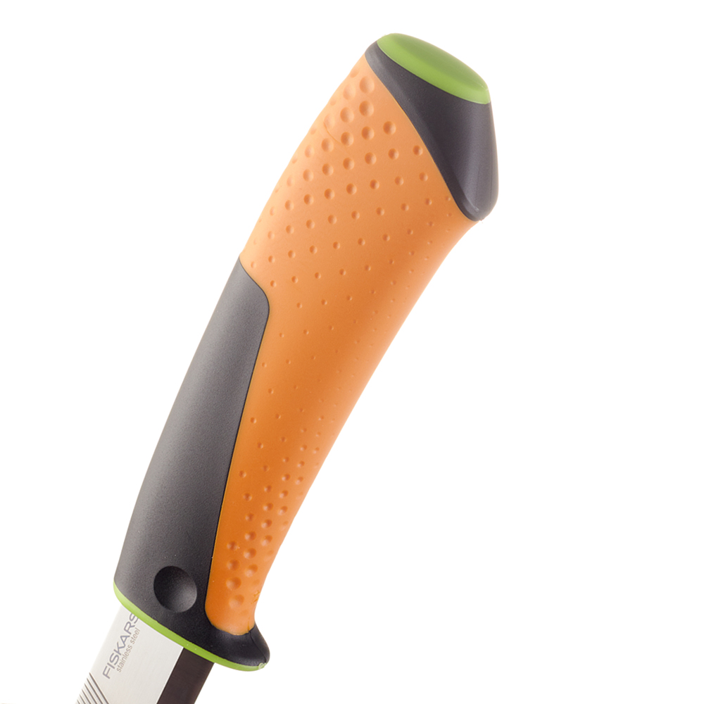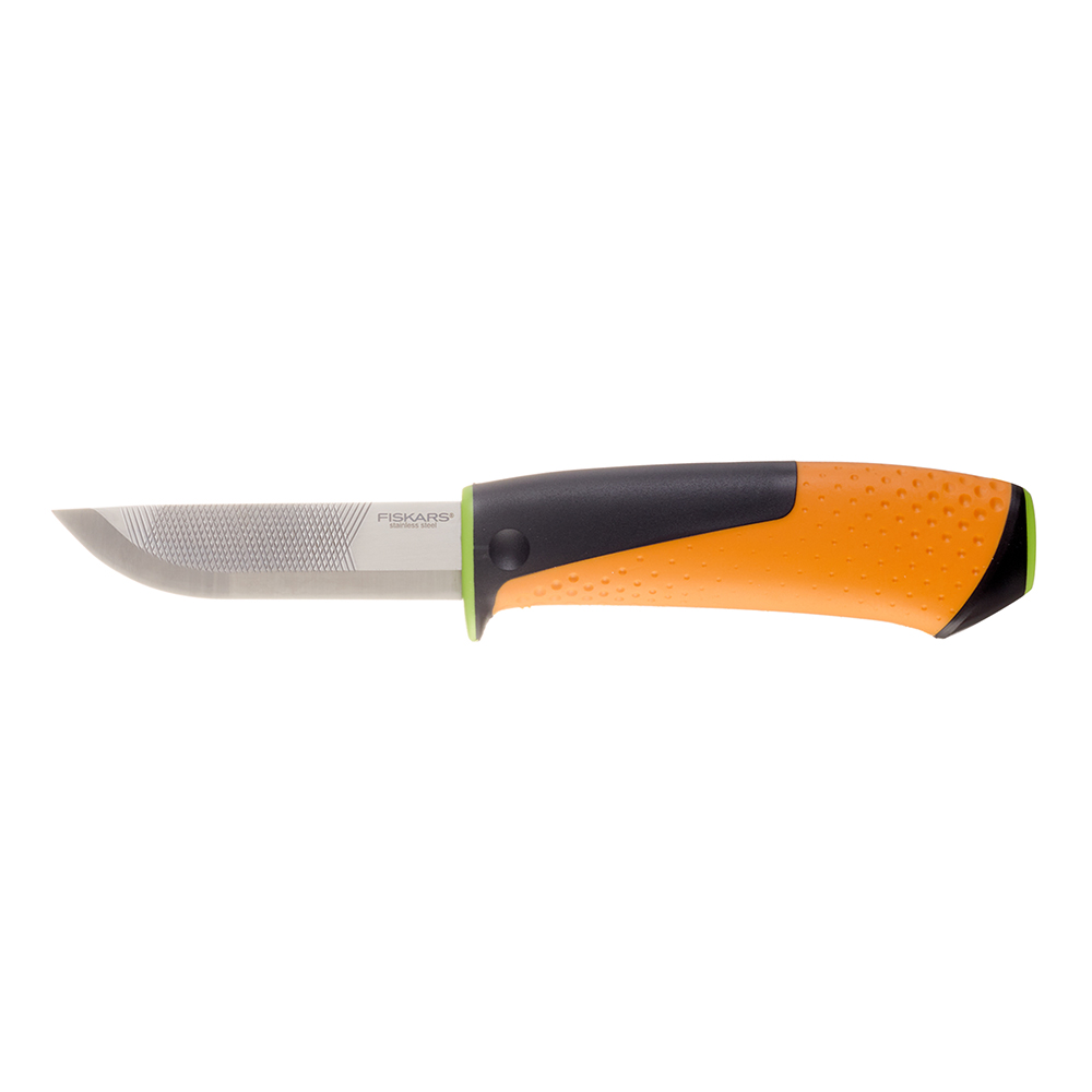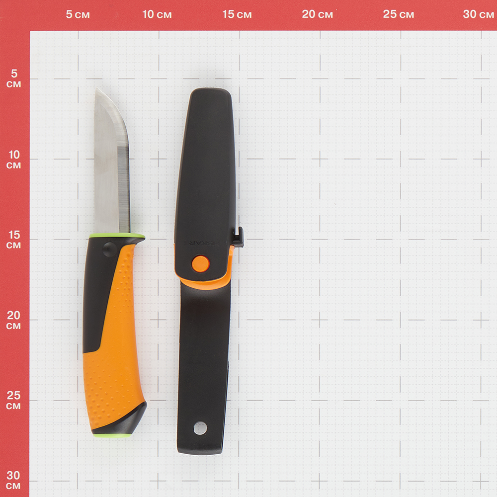 Предназначен для тяжелых работ. Им можно работать в саду, брать с собой в походы. rnЛезвие толстое и широкое, из нержавеющей стали, прослужит долгие годы.Напильник на лезвии.rn3х компонентная рукоятка с контурным покрытием для удобного захвата и максимального контроля. Удобный чехол, подходит для правшей и левшей.rnКлипса для крепления на ременьrnВстроенная точилка в чехол всегда под рукой.