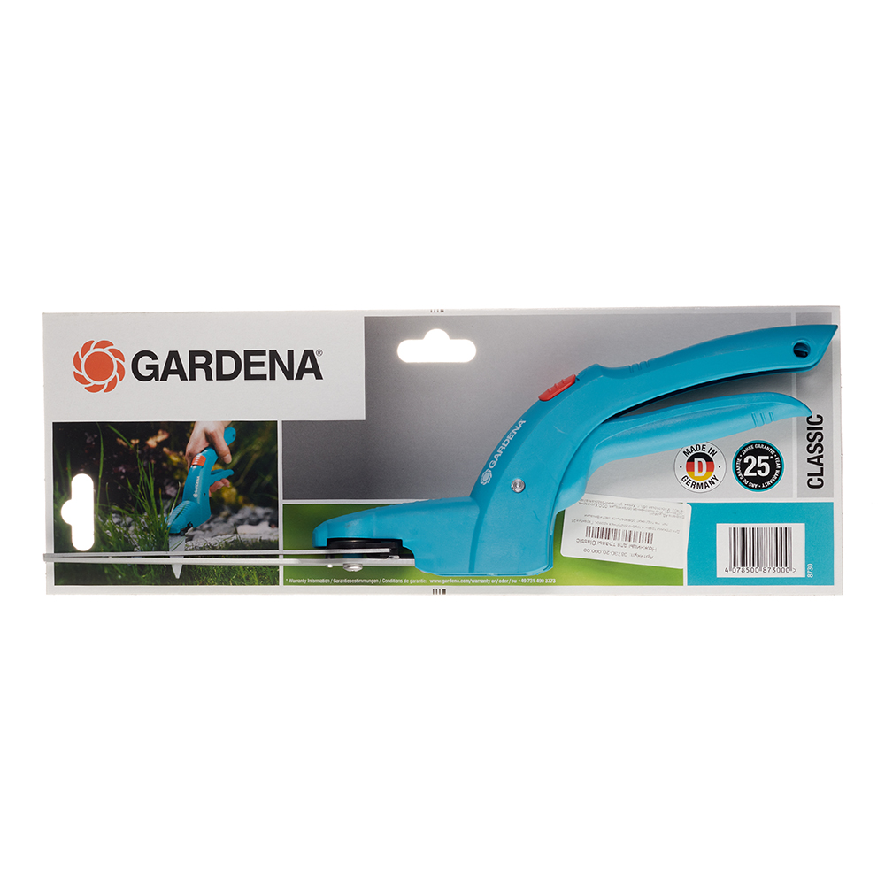 Используя ножницы для травы GARDENA Classic, Вы сможете аккуратно подравнивать кромки газонов. Эргономичная форма рукоятки облегчает процесс стрижки. Закаленные оцинкованные лезвия гарантируют долгий срок службы ножниц, а особое покрытие защищает их от ржавчины. Специальная ножевая опора позволяет получить ровный и чистый срез по всей длине лезвия. Удобный фиксатор, положение которого меняется одной рукой, дает возможность легко и быстро заблокировать ножницы. Гарантия 25 лет.rnБлагодаря эргономичной рукоятке ножницы для травы удобно лежат в руке и не доставляют хлопот при работе.rnСпециальная ножевая опора позволяет получить ровный и чистый срез по всей длине лезвия.rnЗакаленные оцинкованные лезвия. Особое покрытие, защищающее ножницы от ржавчины.rnРазумное и надежное вложение средств. 25-летняя гарантия свидетельствует о высочайшем качестве продукции.