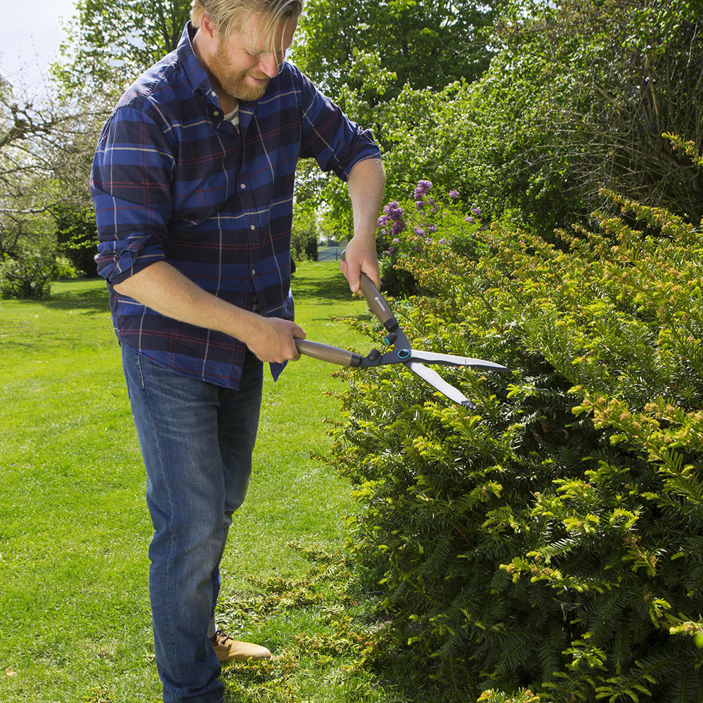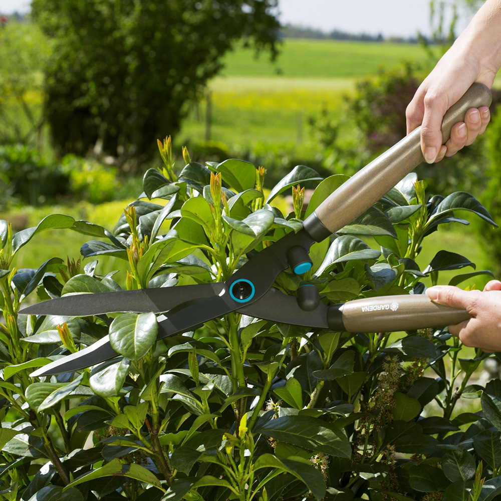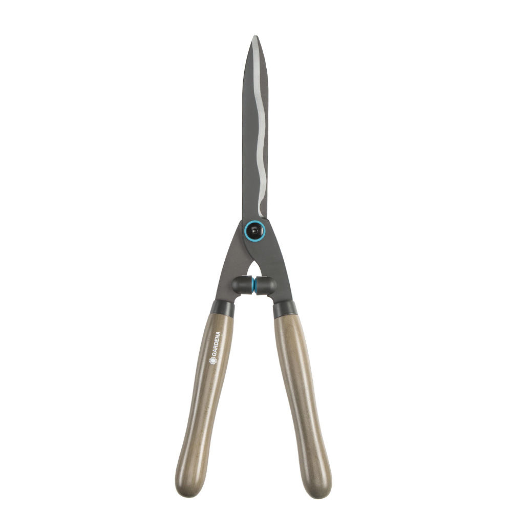 Для обрезки и придания формы кустарникам. Общая длина 535 мм, длина ножей 230 мм. Волнообразная заточка лезвий. Гелевые подушечки на рукоятке для амортизации удара. Интегрированный сучкорез для обрезки более толстых скучков и веток. Деревяные рукоятки эргономичной скругленной формы. Прочные и надежные, рукоятки из древесины европейского бука, сертифицированного FSC 100%, пластиковый чехол для защиты лезвия в упаковке можно использовать при хранении ножниц.