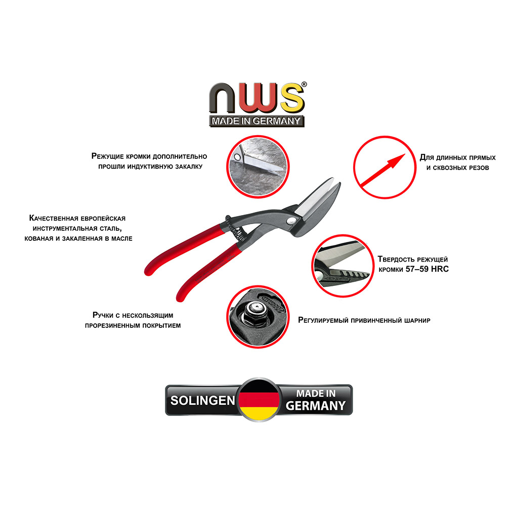 Ножницы по металлу NWS 300 мм прямые (070-12-300)