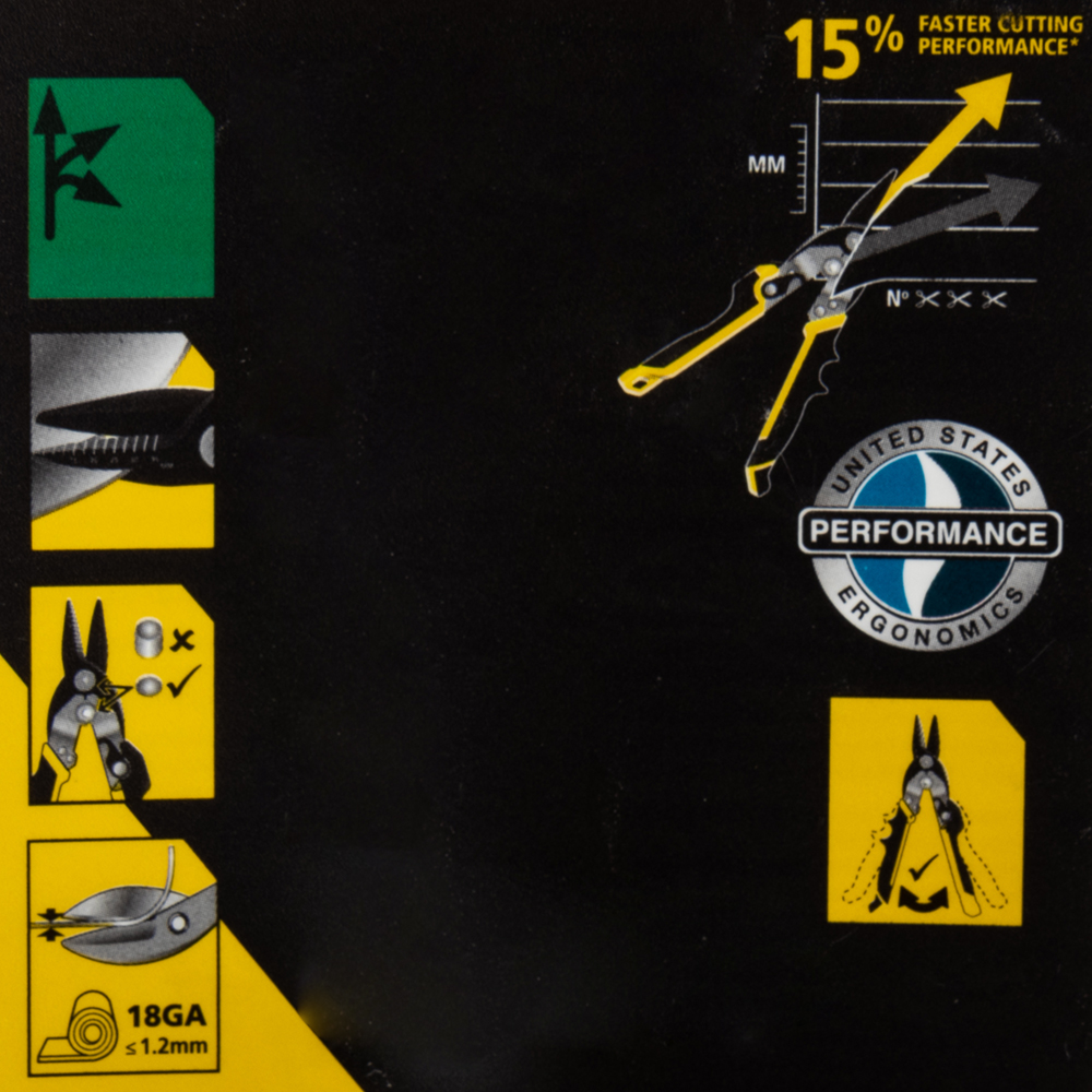 Предназначены для осуществления криволинейного реза в правую сторону холоднокатанной листовой стали толщиной до 1,2 мм, нержавеющей стали толщиной до 0,7 мм, алюминия, меди, металлической сетки, кожи, пластика.rnИзготовлены их хромомолибденовой стали.