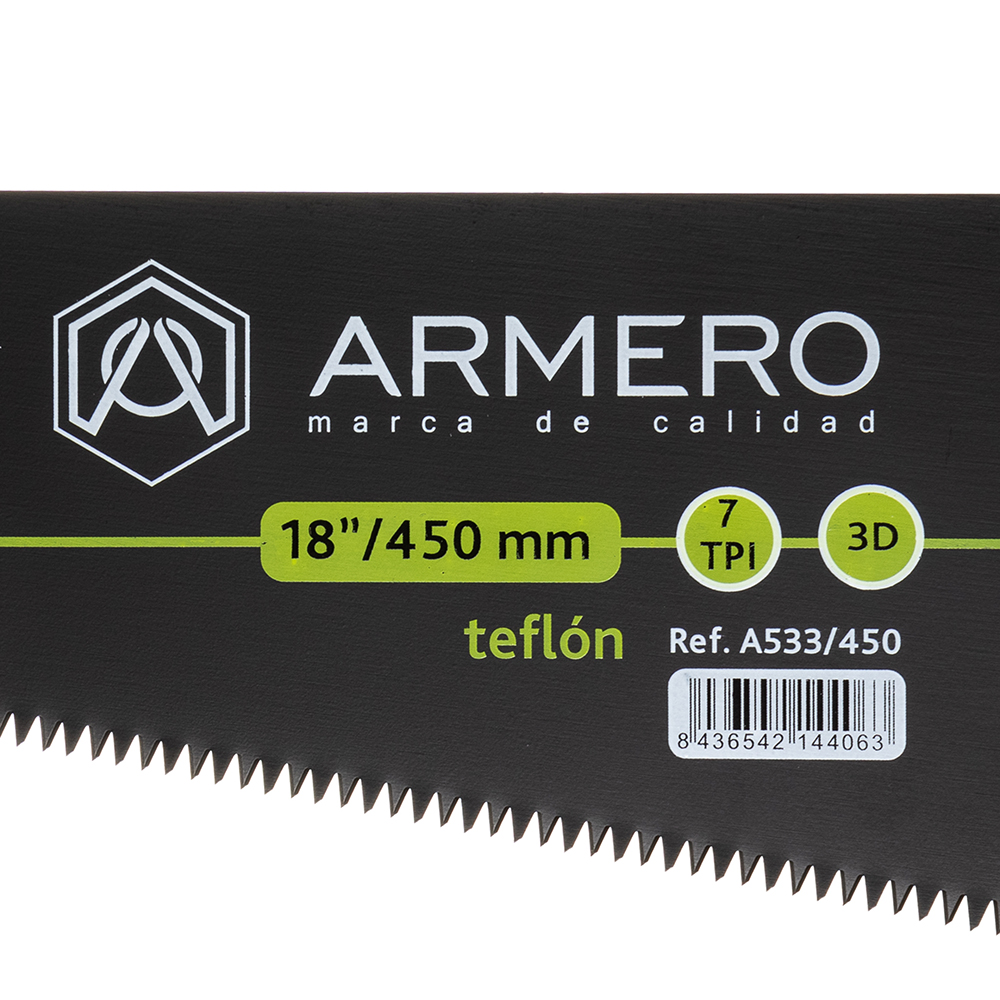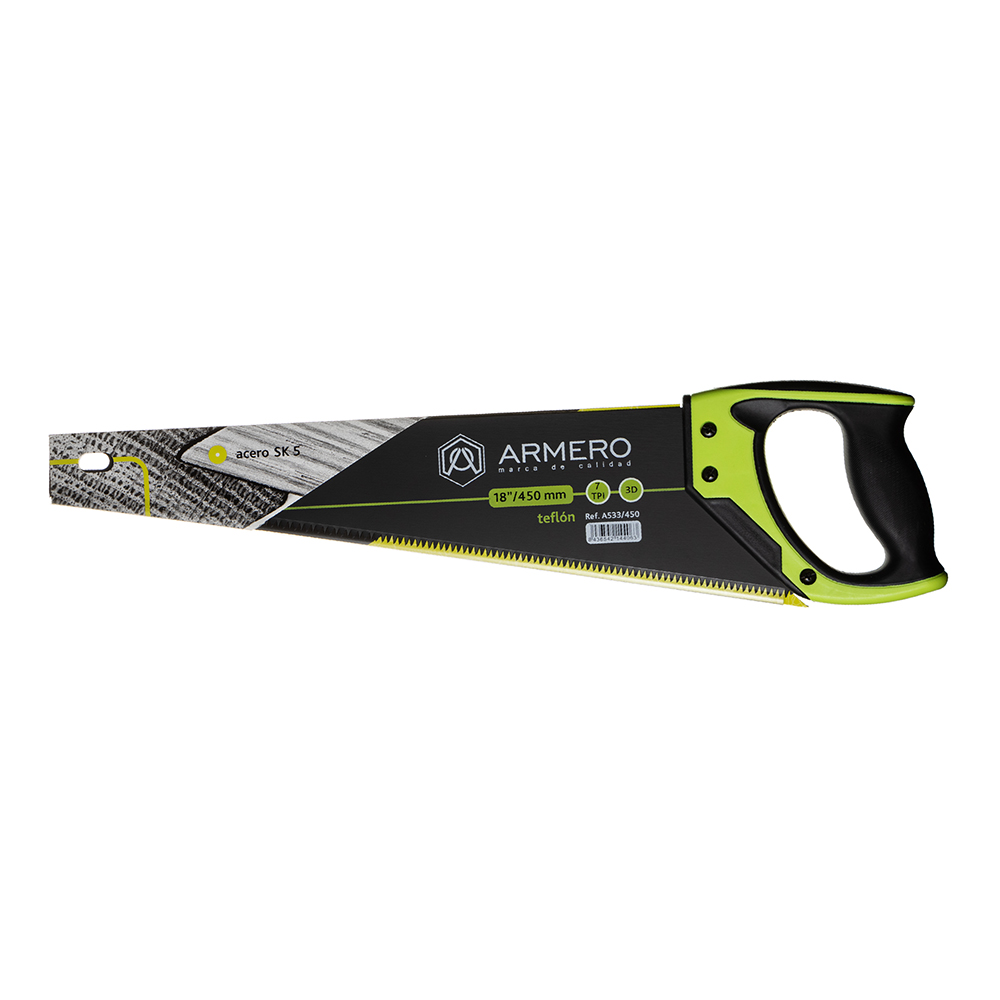 Предназначена для распиловки древесины, фанеры, ДВП, ДСП, ламината и др. Имеет закаленные, заточенные с трех сторон зубья и тефлоновое покрытие, что уменьшает сопротивление материала и облегчает распиливание. Ножовка имеет крупный зуб в количестве 7 штук на дюйм.