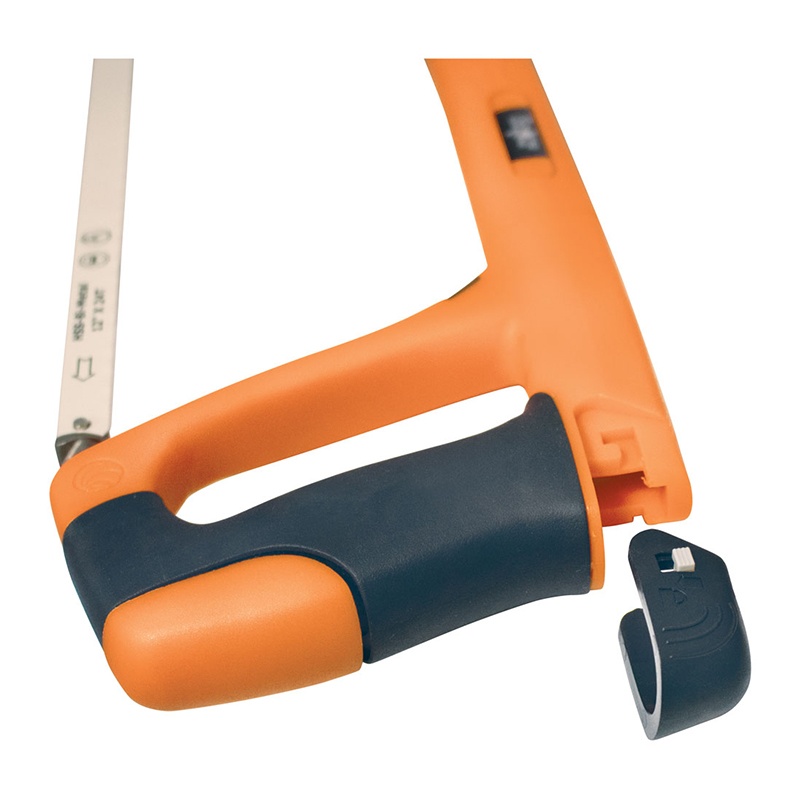 Предназначена для эффективного пиления металлических заготовок. Прочный стальной каркас с ударопрочным полимерным покрытием. Возможность фиксации полотна под углом 55 и 90 градусов. Эргономичные обрезиненные противоскользящие маслобензостойкие рукоятка и упор. Отсек для хранения сменных полотен.