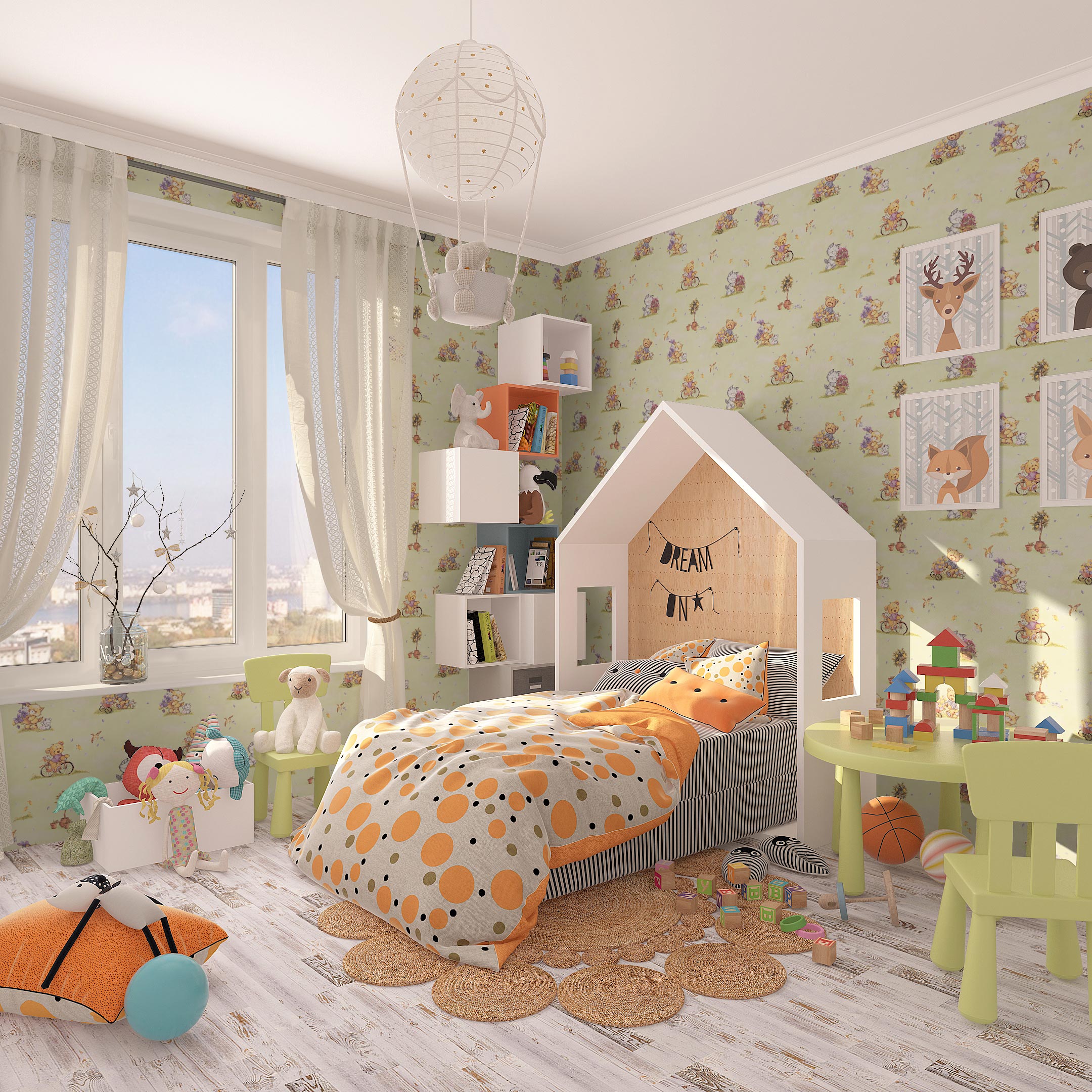 Отмерьте отрезки обоев по высоте стен с запасом 5 см. Нанесите клей на обои с помощью кисти или валика. Приклейте отмерянный кусок обоев и пригладьте его шпателем для обоев. Подрежьте обои по краю стены с помощью ножа и шпателя. Следующий кусок приклеивайте встык
