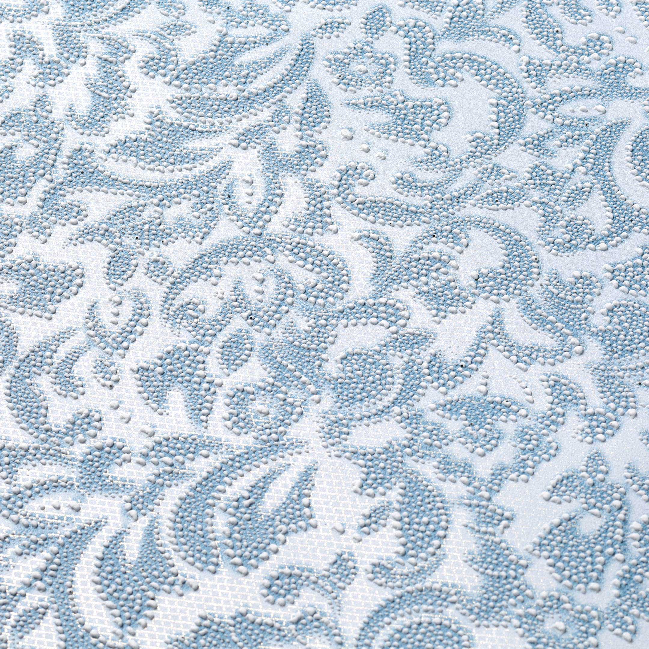 Обои с фоном или без фона и печатным рельефным рисунком пенокрасками создают лёгкость и мягкость интерьера в помещениях. Добавление специальных пигментов с блеском создает неповторимый эффект благородства и изысканности.