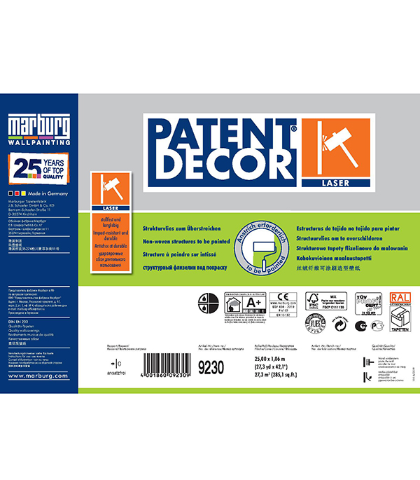 Обои под покраску виниловые на флизелиновой основе фактурные антивандальные Marburg Laser 9230 (1,06х25 м) плотность 175 г/кв.м