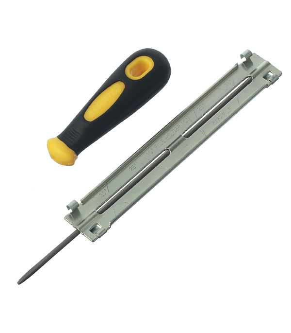 Предназначена для заточки цепи c шагом 3/8” и пазом 1,3 мм. Позволяет легко и быстро затачивать цепь под нужным углом. Также его можно применять для очищения паза направляющей шины от грязи и опилок. Удобная рукоятка, идущая в комплекте, обеспечивает быструю и правильную заточку без лишних усилий.