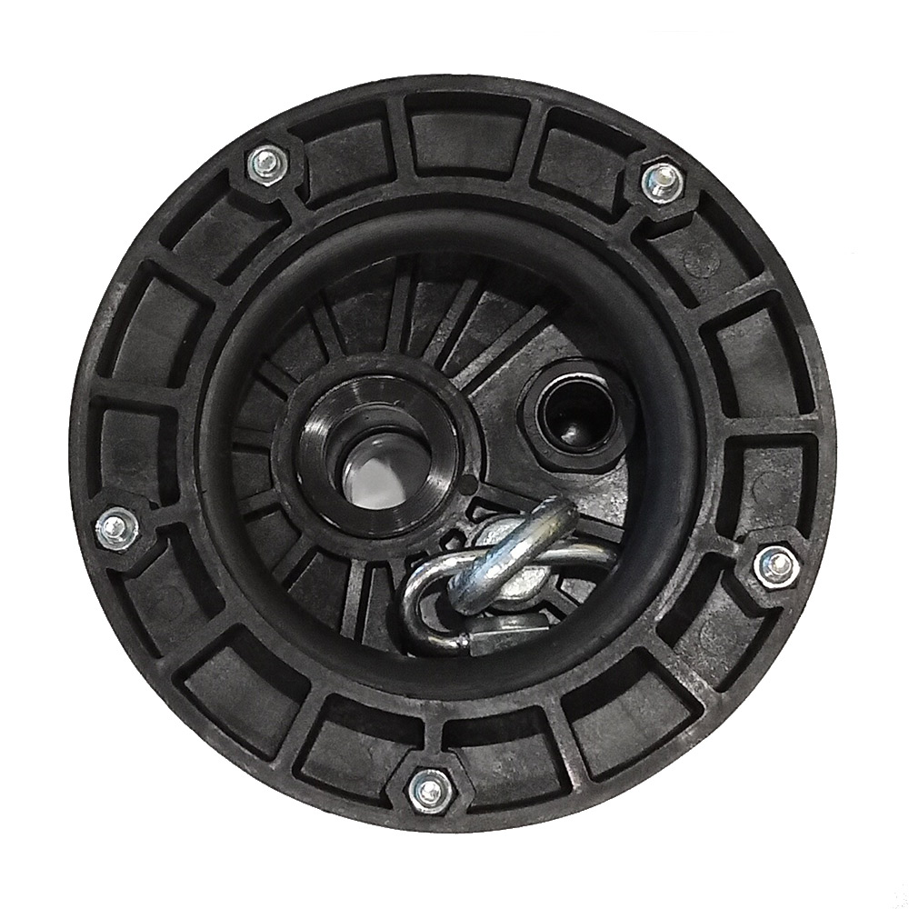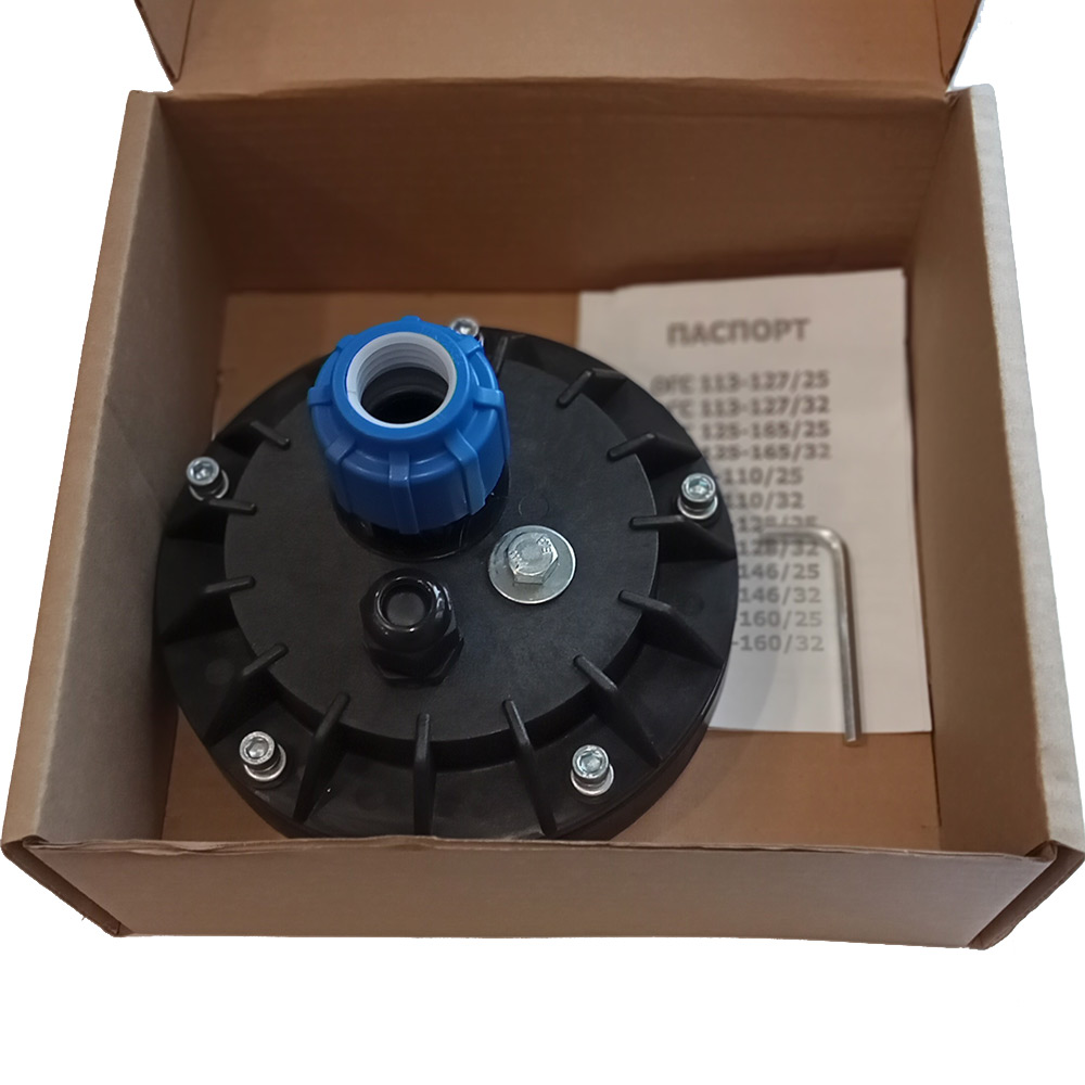 Предназначен для герметизации устья скважины с наружным диаметром обсадной трубы 90 – 110 мм с установленным внутри нее насосом, полиэтиленовой напорной трубой диаметром 32 мм, а также кабелями круглого сечения в оболочке (от 6 до 12 мм).rnПредохраняет скважину от попадания посторонних предметов и поверхностных грунтовых вод.rnРассчитан на подвешивание груза до 200 кг.rnНе требует сварочных paбoт, так как его установка осуществляется посредством затягивания болтов, сжимающих уплотнительное резиновое кольцо между крышкой и прижимным фланцем