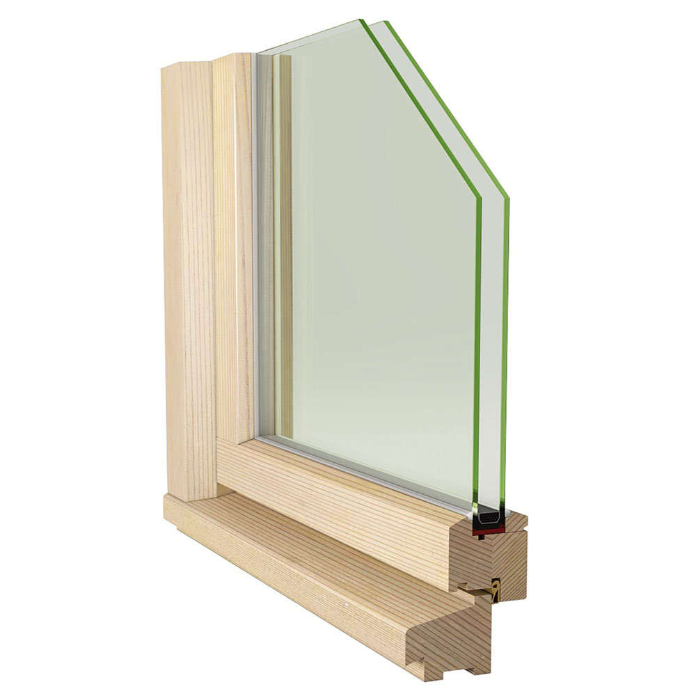 Деревянный оконный блок облегченной конструкции; Стеклопакет STIS 4-10-4; Регулируемые петли (расположены справа); Уплотнитель DEVENTER (Германия); Еврозамок (Россия); Ручкой не комплектуется.