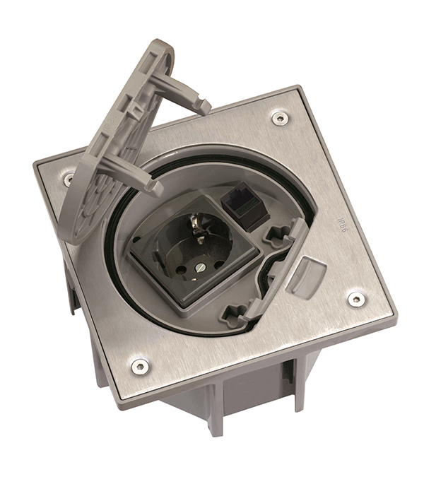 Основа Simon Connect KSE15U-23-72 нержавеющая сталь IP66 влагостойкая с розеткой 220 В и разъемом RJ45