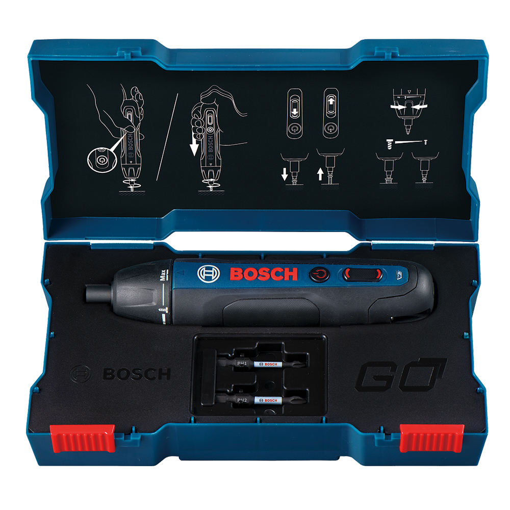 Bosch GO 2 – новое поколение хорошо знакомой модели аккумуляторной отвертки Bosch GO. Два варианта включения инструмента и электронный тормоз, которым оснащена новинка, делают отвертку простой и удобной в использовании.rnТочность и мощность в работе достигаются благодаря механической муфте с 5 настройками крутящего момента и возможностью работать в режиме максимальной производительности со скоростью 360 оборотов в минуту.rnТехнология Smart Stop для выключения инструмента после обнаружения скачка, вызванного смещением между битой и винтом, Bosch GO 2 – минимум усилий, максимум производительности!