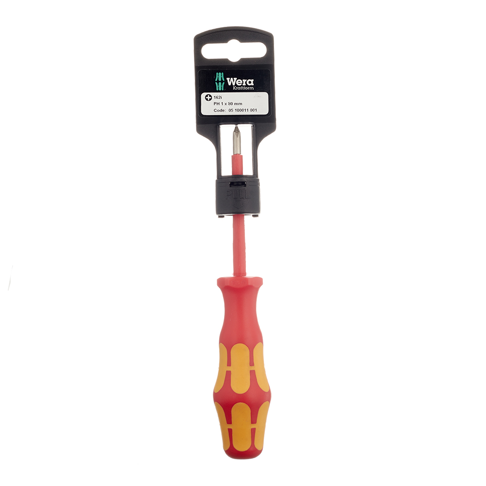 Предназначена для монтажных работ, отвинчивания и завинчивания шурупов и других деталей с резьбой, на головке которых имеется шлиц РН1, находящихся под электрическим напряжением до 1000 В. rnОтвёртка Wera VDE с многокомпонентной ручкой Kraftform для работы в быстром и щадящем режиме. Твердые зоны ручки для высокой скорости работы, в то время как мягкие зоны ручки обеспечивают передачу больших моментов силы.rnШестигранный край ручки для защиты от перекатывания отвёртки на рабочем месте.