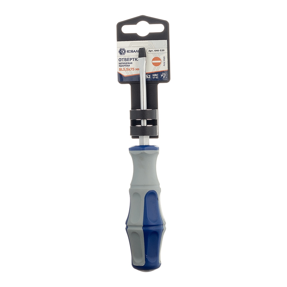 Отвертка плоская SL5.5 75 мм ударная Кобальт (646-539)