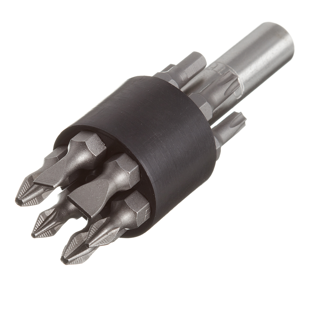 Предназначена для слесарно-монтажных работ. Реверсивный механизм позволяет исключить перехватывание отвертки при работе.rnИмеет 12 насадок 25 мм, позволяющих монтировать крепеж с различным шлицем: rnSL: 0,8х5,5 и 1,2х6,5rnPH: PH1 и PH2rnPZ: PZ1, PZ2rnВ набор также входит универсальный держатель для бит.