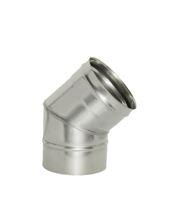 Предназначен для изменения направления дымового канала на угол 45.rnнержавеющая сталь марки AISI 439, толщина 0,5 мм, номинальная температура дымовых газов 550 °C, максимальная краткосрочная 1000 °C.