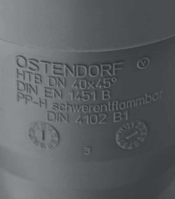 Отвод Ostendorf d40 мм 45° пластиковый для внутренней канализации
