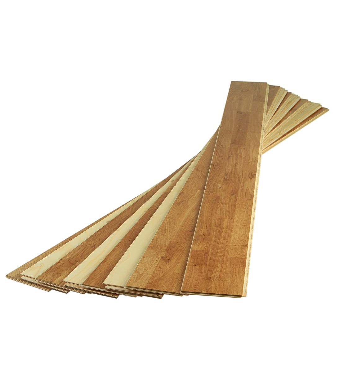 верхний слой – шпон дуба, толщиной 3,5 мм, средний слой северная ель -8,5 мм, нижний слой шпон северной ели 2 мм.