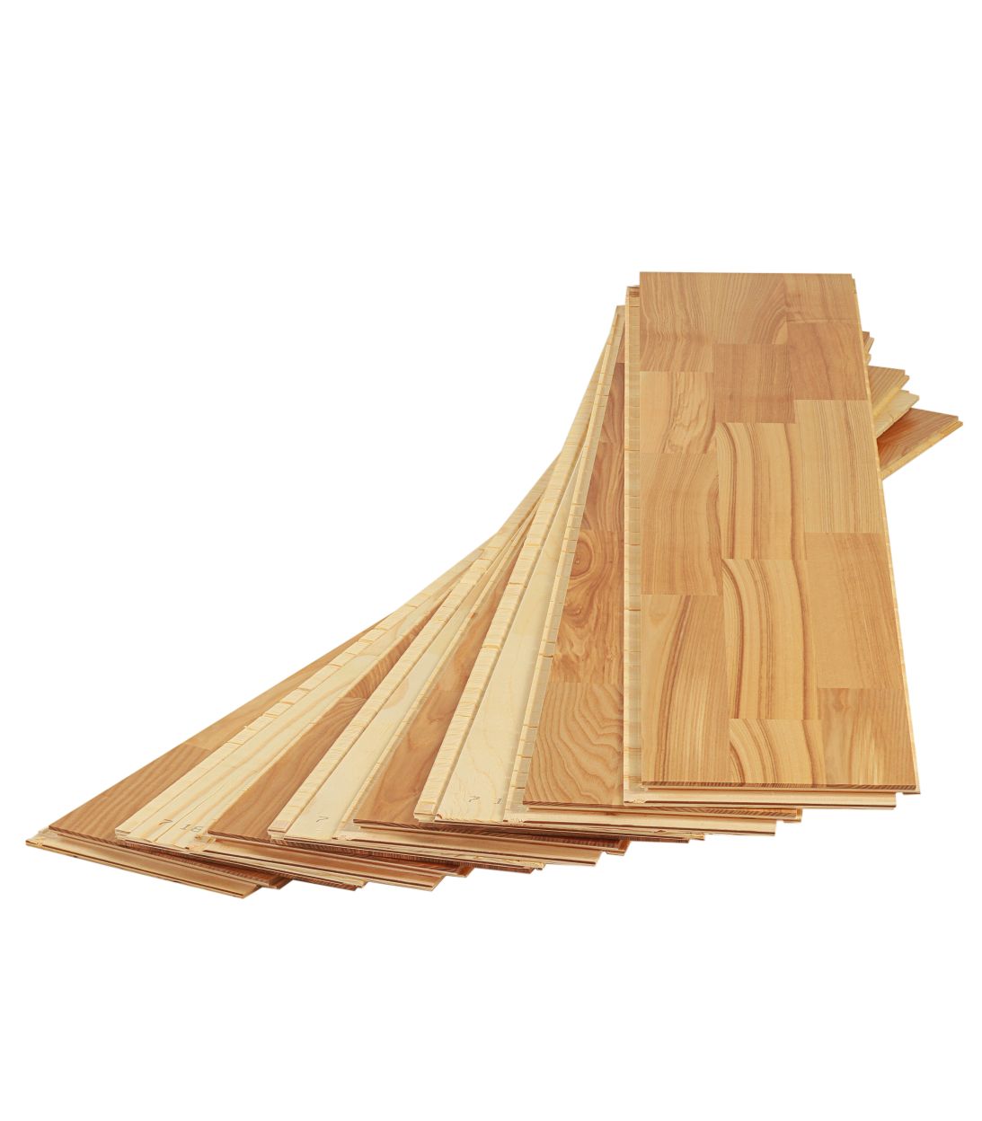 состоит из нескольких слоев дерева, где ценным является только верхний слой.