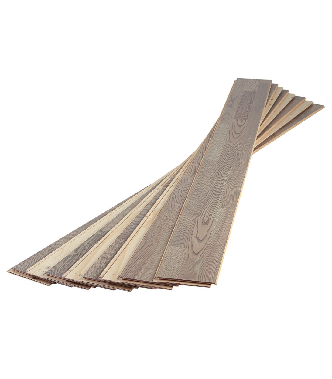 состоит из нескольких слоев дерева, где ценным является только верхний слой.