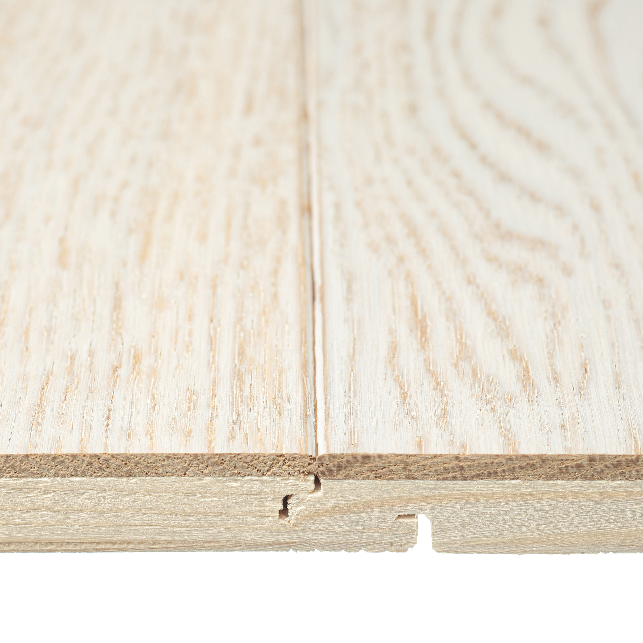 Укладка (сборка) пола осуществляется последовательно в выбранном направлении (обычно слева направо), при этом удобнее начинать укладку от самой длинной стены. С обеих сторон ряда (между стеной и торцами крайних досок) необходимо оставить компенсационный зазор, в который устанавливаются расширительные клинья. Укладка очередного ряда начинается с остатка доски предыдущего ряда, при условии, что длина оставшегося фрагмента не менее 30 см. Монтаж нового ряда следует начинать с соединения торцевых кромок доски, и дальнейшей стыковкой по длинной стороне. Необходимо контролировать, чтобы расстояние между торцами досок соседних рядов было не менее 30 см, это придастrnпокрытию необходимую прочность. После укладки первых трех рядов нужно выставить компенсационный зазор по длинной стороне. Для этого следует отодвинуть уложенную паркетную доску от стены и вложить расширительные клинья. Расширительные зазоры должны быть сделаны у всех стен и других неподвижных частей помещения (колонны, трубы отопления и др.) и составлять 10–15 мм, предохраняя покрытие от деформации при изменении влажности.rnПоследний ряд досок перед укладкой необходимо тщательно измерить. Если панель последнего ряда не подходит по ширине, тогда поместите панель точно над панелью предыдущего ряда. Затем поместите следующую панель сверху впритык к стене с клиньями, которые обеспечивают расширительный зазор, образуя нахлёст. Проведите линию, по которой необходимо будет сделать продольный распил. Обрезать доски нужно со стороны паза.rnПосле укладки пола нужно аккуратно вынуть расширительные клинья, а расширительные зазоры закрыть декоративным плинтусом. Плинтус крепится только к стене. Не допускается крепление плинтуса к напольному покрытию.rnПри разборке уже уложенных напольных покрытий и повторной укладке ответственность за состояние панелей несёт потребитель. Все заявленные характеристики продукта распространяются только на первичную укладку на основания.