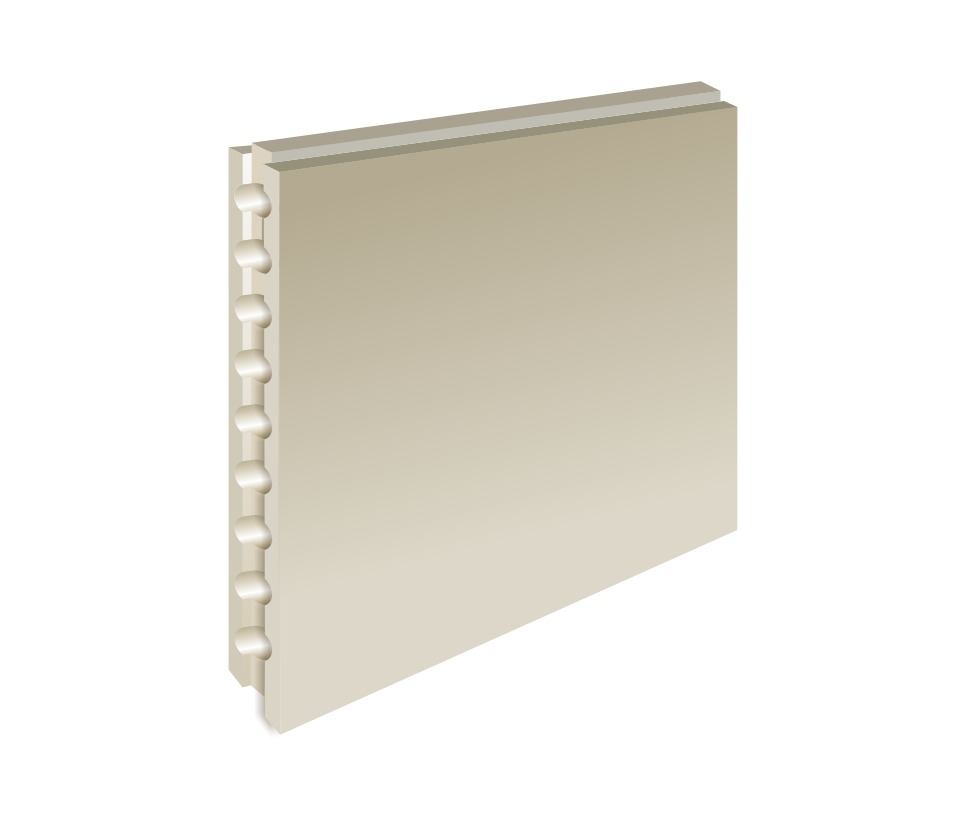 Пазогребневая плита изготавливается из гипсового вяжущего по литьевой технологии. По периметру имеет паз и гребень для обеспечения высокой точности кладки. Технология производства позволяет получить плиты с хорошим качеством лицевой поверхности и высокой точностью размеров.