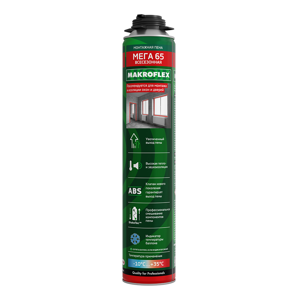Однокомпонентная полиуретановая пена. rnОбладает хорошей адгезией к большинству строительных материалов кроме полипропилена, полиэтилена и силикона.rnПена педназначена для заполнения пустот при устройстве оконных и дверных блоков, подоконников, крепления стеновых панелей, герметизации и теплоизоляции швов и других строительных, отделочных и монтажных работ.