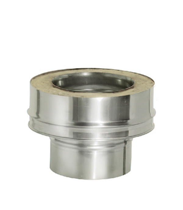 Предназначен для перехода от одностенных дымоходов на двустенные (сэндвич).rnВнутренний контур нержавеющая сталь марки AISI 439, толщина 0,5 мм, номинальная температура дымовых газов 550 °C, максимальная краткосрочная 1000 °C. rnНаружный контур нержавеющая сталь марки AISI 439, толщина 0,5 мм, номинальная температура дымовых газов 550 °C, максимальная краткосрочная 1000 °C.