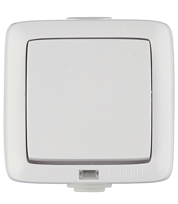 Переключатель HEGEL Alfa ВА10-262 одноклавишный на 2 направления открытая установка белый IP44 с подсветкой