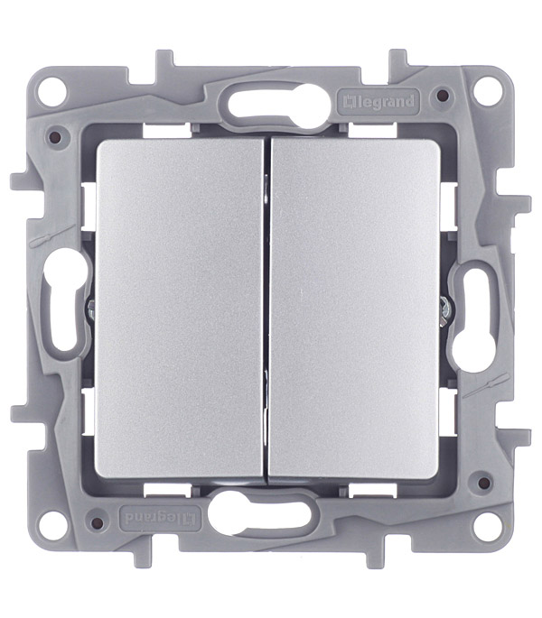 Переключатель Legrand Etika 672412 двухклавишный на 2 направления скрытая установка алюминий