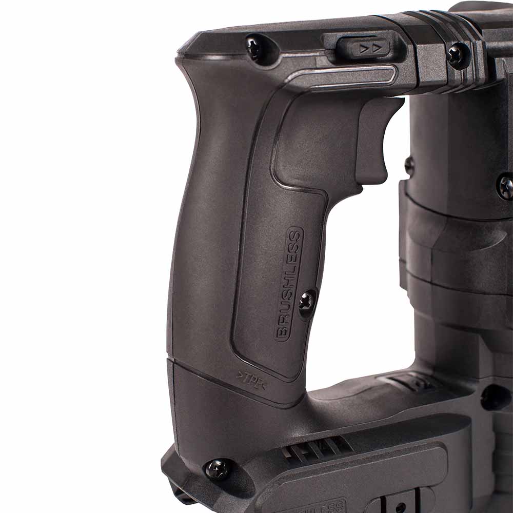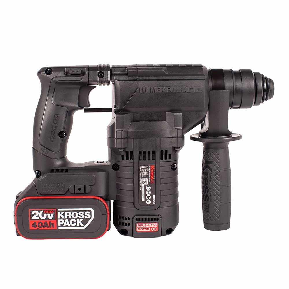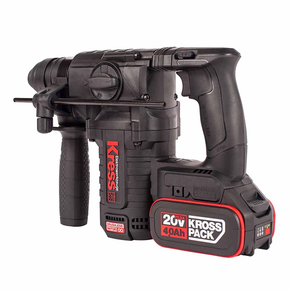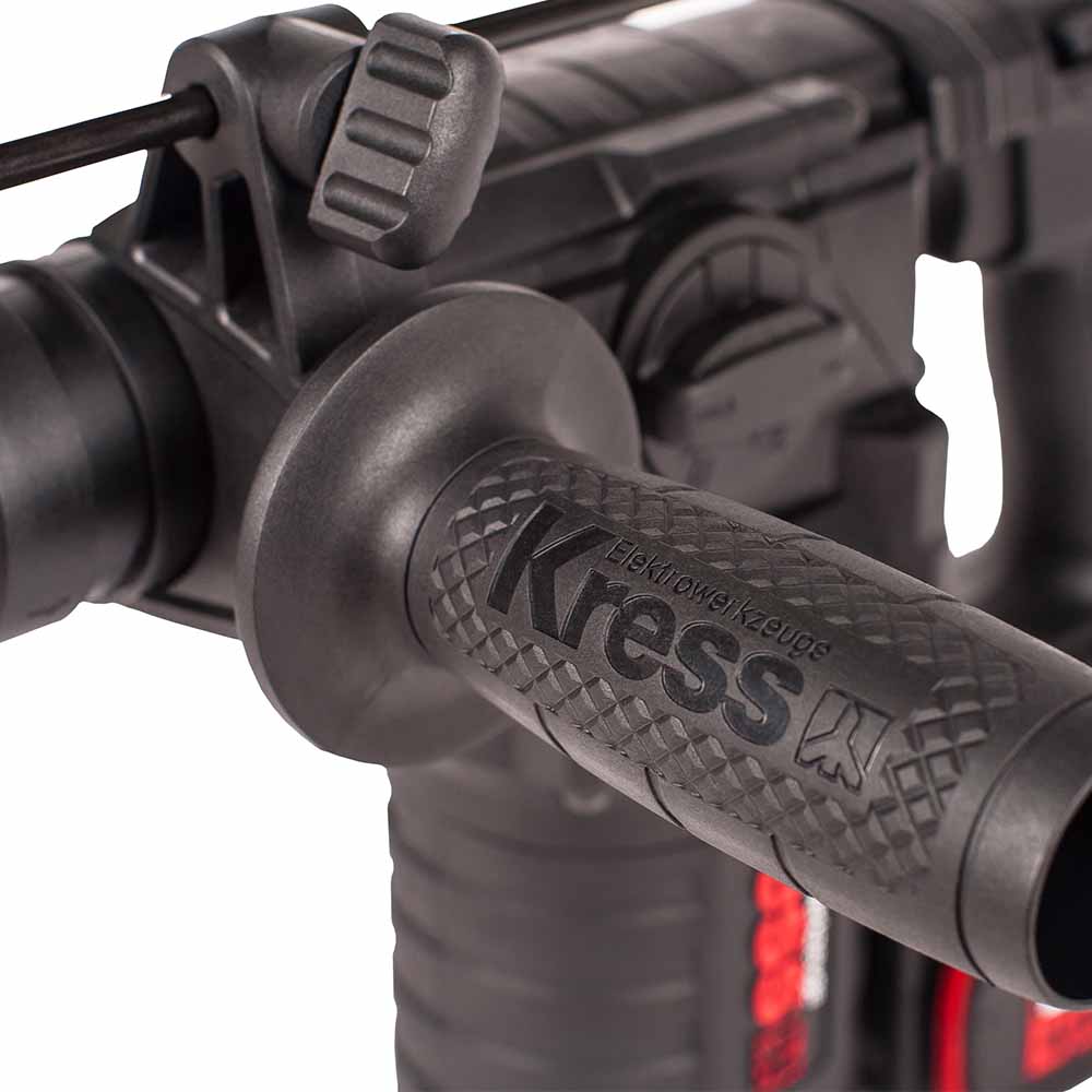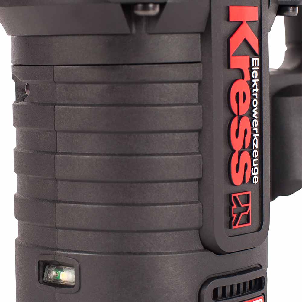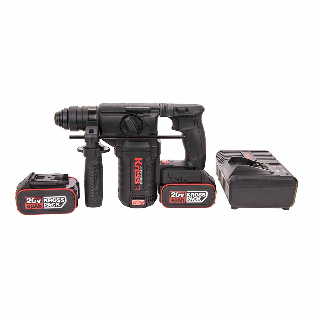 Аккумуляторный перфоратор KRESS. Компактный размер и легкий вес для более комфортной работы. Перфоратор оснащен тремя режимами работы: сверление, сверление с ударом и отбойный молоток (с возможностью регулировки угла насадки).rnДля повышения комфорта и контроля работы с перфоратором имеется антивибрационная система.