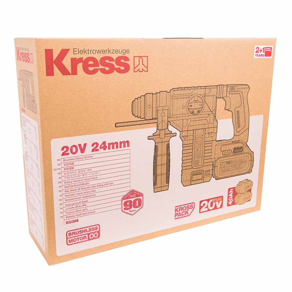 Перфоратор аккумуляторный Kress TBD KU388 2,2 Дж 20В 2х4Ач Li-Ion SDS-plus
